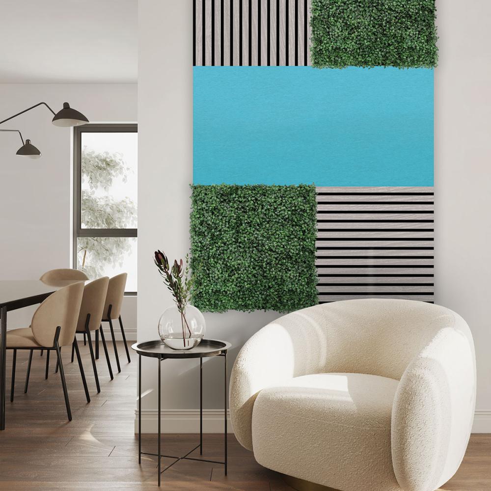 Farebné panely z recyklovaného PET materiálu ponúkajú nielen žiarivé farby, estetický vzhľad, ale aj zlepšenie akustiky miestnosti. Vytvárajú tak moderné a udržateľné prvky interiéru, ktoré je možné navzájom kombinovať s viac ako 40 rôznymi typmi panelov.