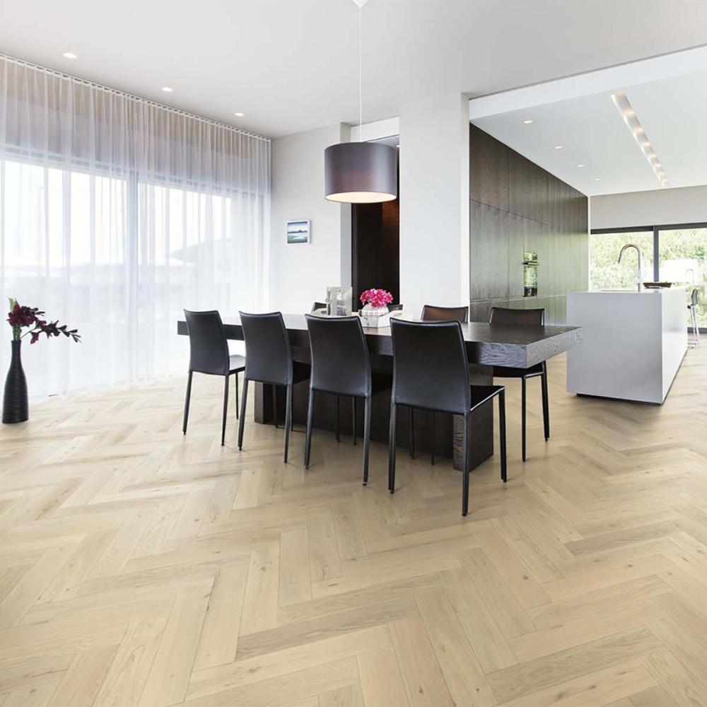Drevené podlahy Kahrs HERRINGBONE CD Dub Biely